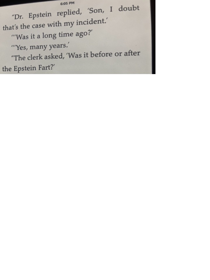This joke is from the book, THE LAWYER, by John Ellsworth (available on Amazon and no I don't get a commission). It is too long to retype so i just took photos of my Kindle.